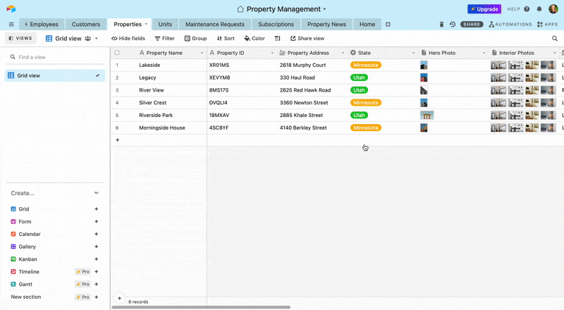 For example, you can start by presenting your information as rows, a board, tables, inbox, single-view, or a calendar view (as shown in the example below).