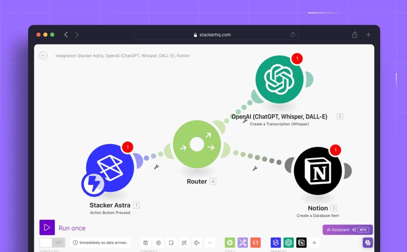 Stacker, for example, uses a Make.com integration to trigger sequences of events between different business apps. This is especially helpful when you're not just implementing a single tool, like a basic client tracking portal, but rather integrating multiple systems to provide a holistic view of client interactions.