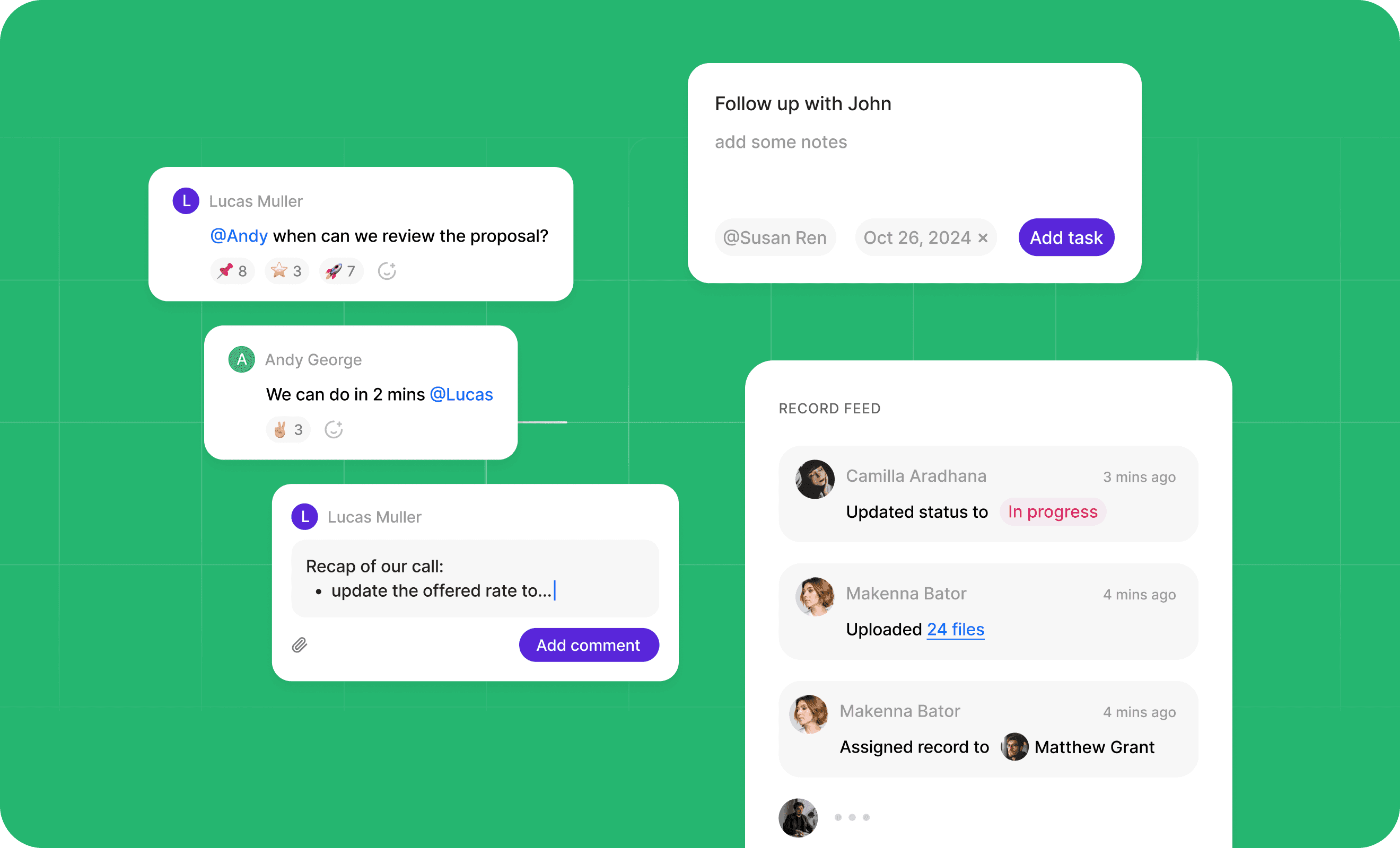Around the data in Stacker, you can now collaborate in new ways. Comment feeds have been upgraded to be richer and threaded, and new collaboration experiences have been added with Tasks and Notes which can be attached to any records.